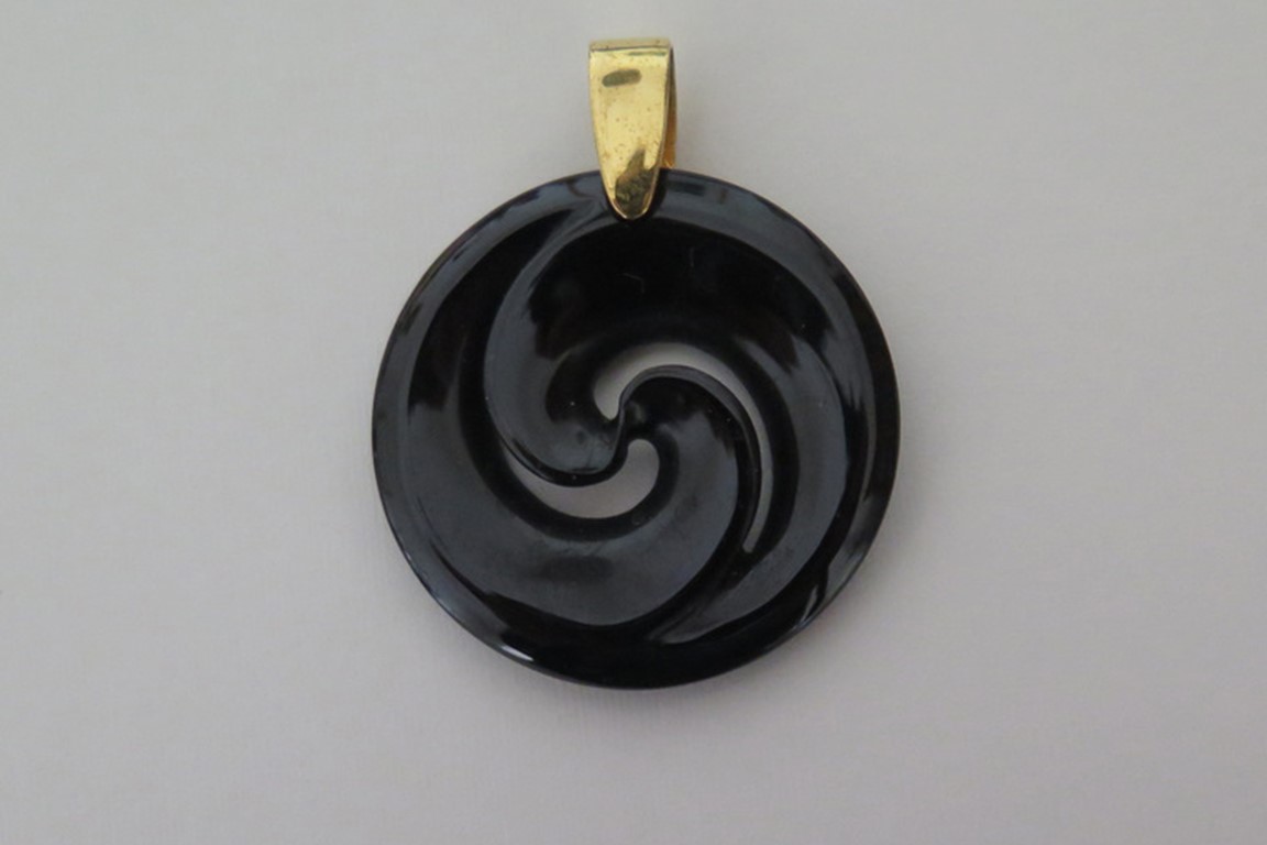 Chiếc vòng cổ ngọc bích mang ý nghĩa may mắn, giàu có và gìn giữ truyền thống. Đây không chỉ là món đồ trang sức độc đáo thể hiện cá tính mà còn là vật gia truyền của gia đình, chứa đựng giá trị tinh thần và khả năng kết nối tâm linh. Thiết kế của chiếc vòng chủ yếu thể hiện hình ảnh một người đàn ông đang nhảy múa một mình, hai tay chống hông, hai chân chụm, nhún nhảy từ bên này sang bên kia với biểu cảm sinh động. Hình ảnh này có thể lấy cảm hứng từ các tư thế nhảy múa của người Maori, sau đó được cách điệu thành biểu tượng nghệ thuật đơn giản và sống động. Chiếc vòng cổ ngọc bích từ đó đã trở thành biểu tượng văn hóa của người Maori và New Zealand.