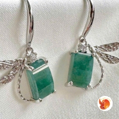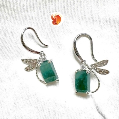 Hoa Tai Chuồn Chuồn Ngọc Phỉ Thuý Bạc Phủ Vàng