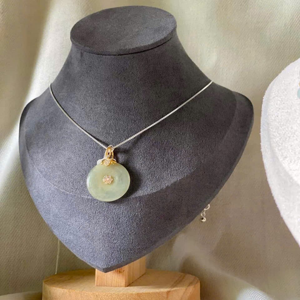 - Phỉ thuý: Với sắc xanh tươi mát và ánh sáng trong trẻo, từ lâu đã được xem là một trong những loại ngọc quý nhất. Khi được chế tác thành Khấu bình an, ngọc phỉ thúy trở nên lung linh, rạng rỡ, mang đến nguồn năng lượng tươi mới, giúp cân bằng cảm xúc và mang lại sự bình yên trong tâm hồn.