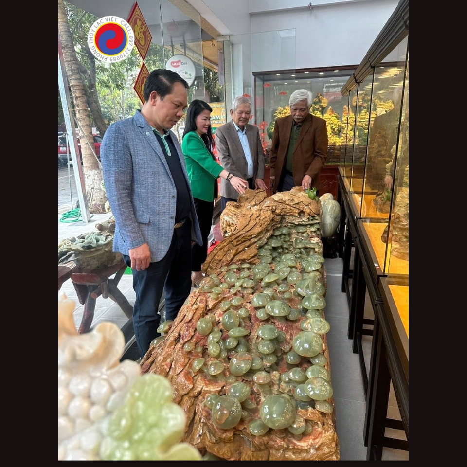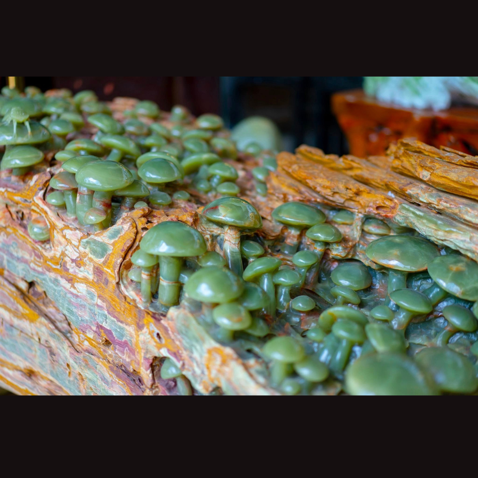 Tác phẩm “Nấm Linh Chi Trường Thọ Ngọc Bích” tại Lạc Việt là một tuyệt phẩm điêu khắc thủ công, mô phỏng cụm nấm linh chi cổ đại mọc trên thân gỗ hóa thạch, chiều dài lên tới 2.9 mét – kích thước lớn, khí thế vượng, tạo điểm nhấn phong thủy đầy ấn tượng cho không gian cao cấp.