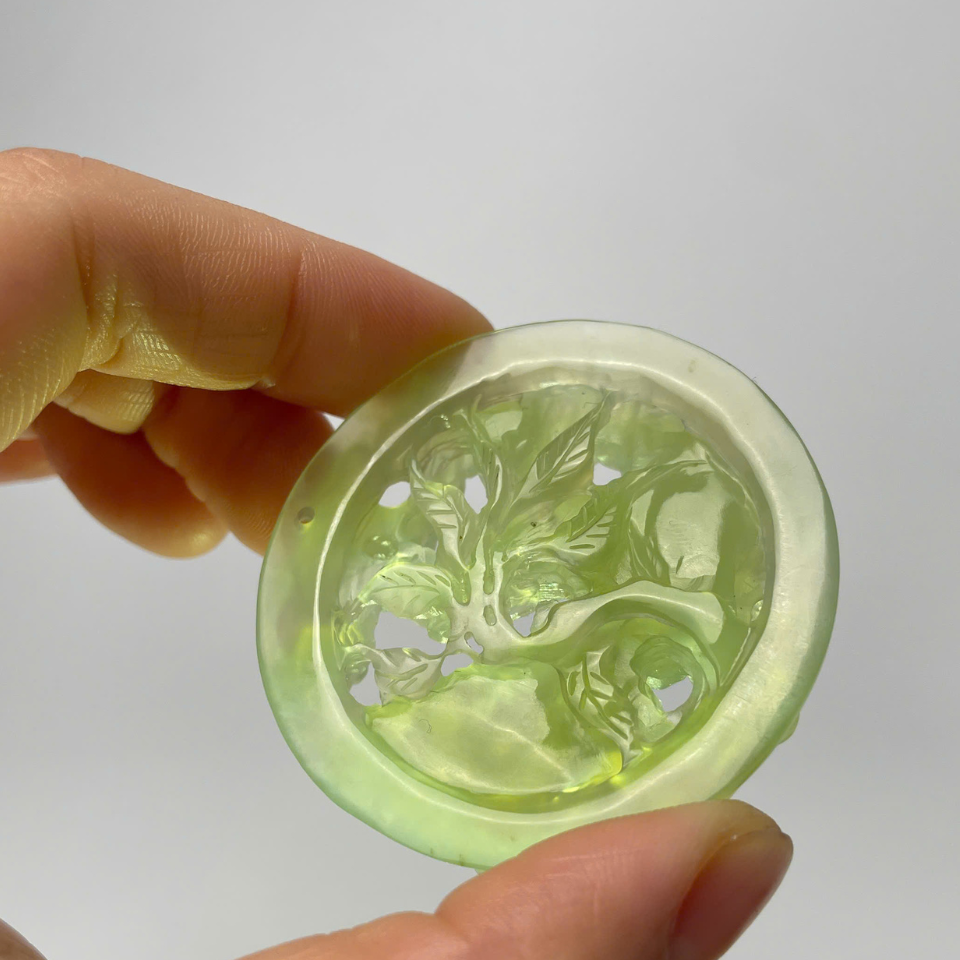 Chất liệu: Ngọc tụ nham tự nhiên cao cấp, ánh ngọc sáng mịn, sắc xanh ánh vàng đặc trưng