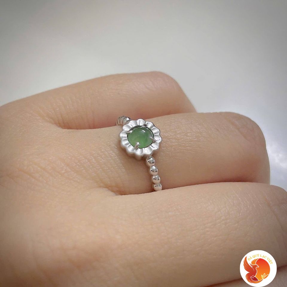 - Nhẫn màu xanh ngọc phỉ thúy: Sắc xanh dịu nhẹ, trong trẻo như làn nước mùa xuân, mang đến cảm giác tươi mới và thanh thoát. Đây là màu sắc biểu tượng cho sự bình an, may mắn và sức khỏe.