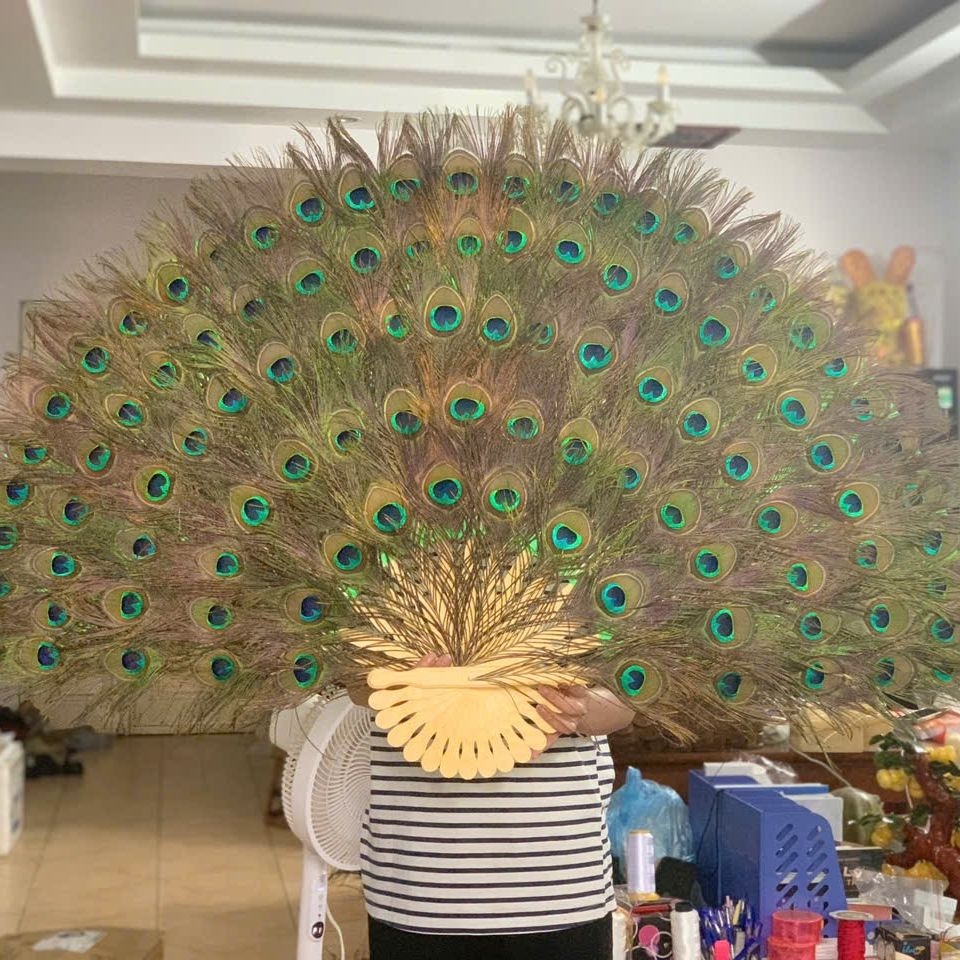 Mỗi chiếc quạt lông công đều là một tác phẩm nghệ thuật độc đáo. Từng sợi lông công được tuyển chọn kỹ lưỡng, từ những con chim khỏe mạnh nhất, sở hữu bộ lông óng mượt và màu sắc rực rỡ nhất. Với số lượng lông công lên đến 99 chiếc, quạt không chỉ là một vật trang trí đẹp mắt mà còn mang ý nghĩa phong thủy sâu sắc: