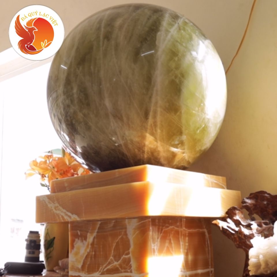 Cầu đá thạch anh vàng với hình dạng tròn trịa, tượng trưng cho sự viên mãn và hài hòa. Hình cầu giúp lan tỏa năng lượng đều khắp không gian, mang lại cảm giác bình an và ấm áp. Khi kết hợp với trụ đá, bộ đôi này tạo nên sự cân bằng hoàn hảo giữa tụ khí (trụ đá) và phân tán năng lượng (cầu đá), giúp tối ưu hóa phong thủy cho gia đình.