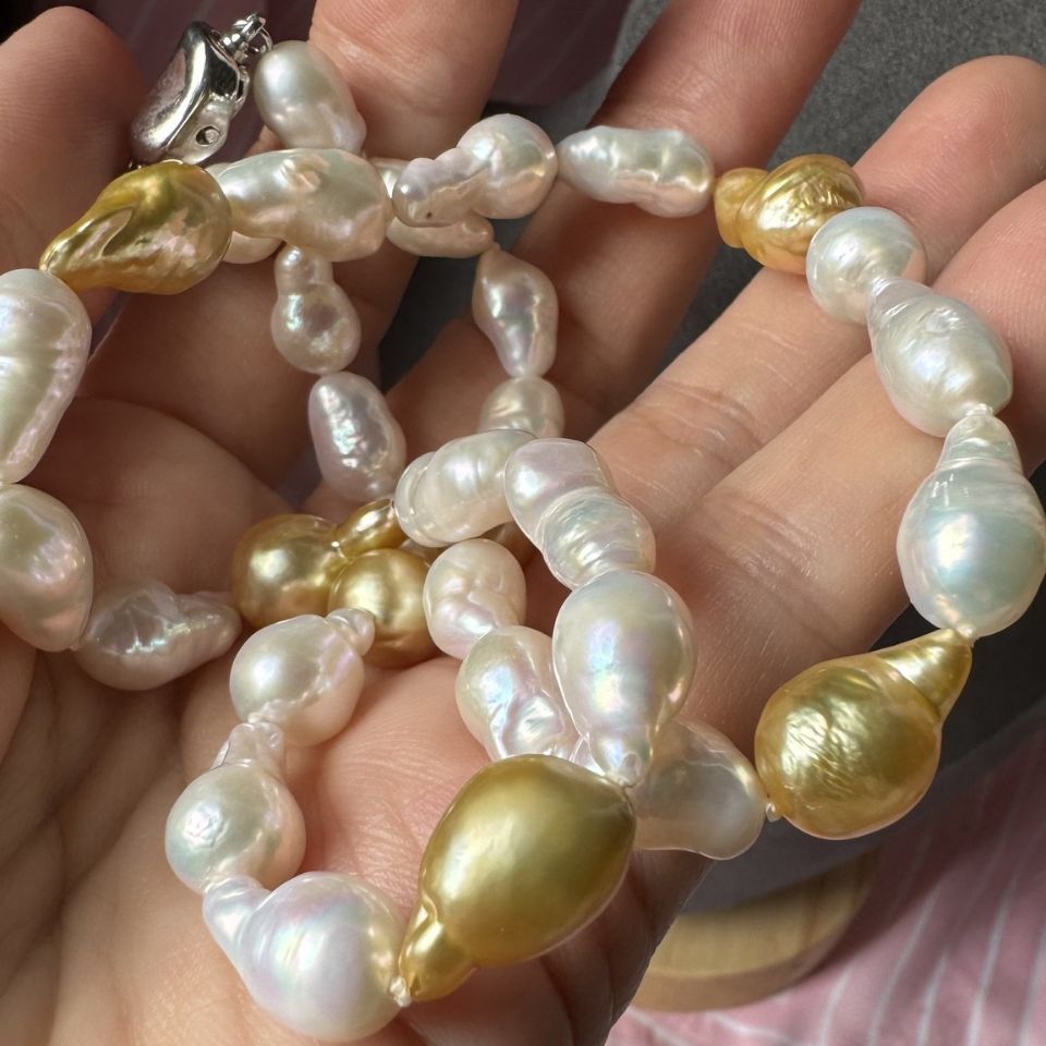 Ngọc trai dị hình, hay còn gọi là ngọc trai baroque, là những viên ngọc trai có hình dạng không hoàn hảo theo chuẩn tròn truyền thống. Chính sự "không hoàn hảo" này lại tạo nên nét đẹp độc nhất vô nhị. Mỗi viên ngọc trai trong chiếc vòng đều có hình dáng khác nhau, từ dạng giọt nước, bầu dục đến những hình thù tự nhiên đầy sáng tạo. Điều này khiến chiếc vòng trở thành một tác phẩm nghệ thuật mà không món trang sức nào có thể sao chép.